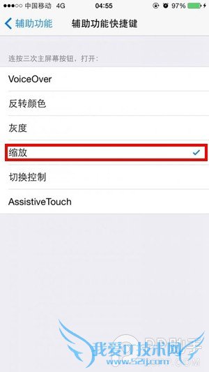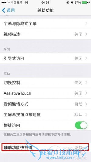 5、然后返回主屏幕,连按三下Home键,进入下图中的设置项。