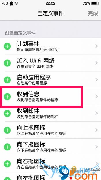 然后右上角便会有一个“编辑”,点一下他,便会让你选择自定义事件。在这里选择“收到短信”。