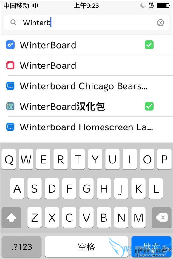 接下来就是解决方法。如果你出现了这种问题,那就到cydia里搜索栏里,搜索winterboard。类似下图,但是如果出现了红字,那就会出现一个winterboard后面带“+”的状况。打开点击清除就行了。