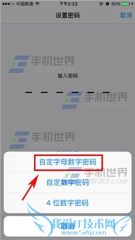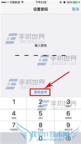 2)接着我们再点击中间的【密码选项】,然后选择【字母数字密码】。(如下图)