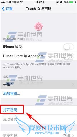 1)首先我们先打开【设置】,然后找到【Touch ID与密码】,打开后点击【打开密码】。(如下图)