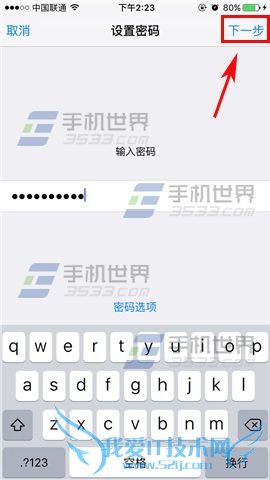 3)然后输入密码点击右上角的【下一步】,最后再重复输入一次密码点击【完成】就可以了。(如下图)