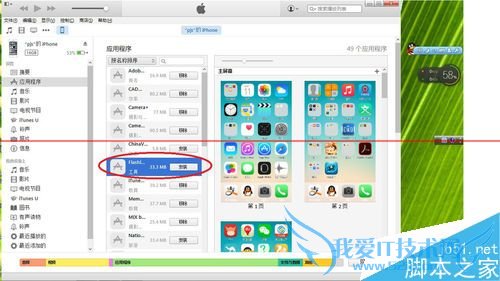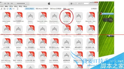4、进入运用程序界面,找到你要删除的软件,例如本次操作,找到“flashlight”。
