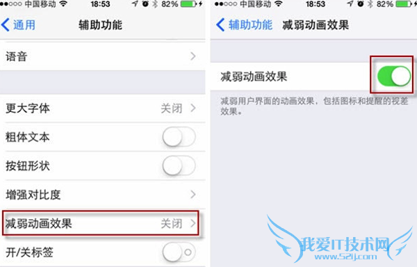 返回设置界面后不管是设置菜单还是桌面效果,此时都已呈灰度显示。经过测试,开启“灰度”选项之后,每分钟的耗电量百分比相对未开启时减少33%,如果没有运行大型的后台程序,省电效果更明显。另外,在“辅助功能”下,打开“减弱动画效果”开关,也能让iPhone运行得更久。
