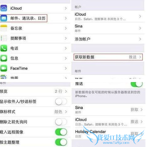 4、邮件、通讯录、日历推送关闭。