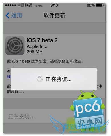 4、然后等待系统连网检测 iOS 7 beta2 固件。
