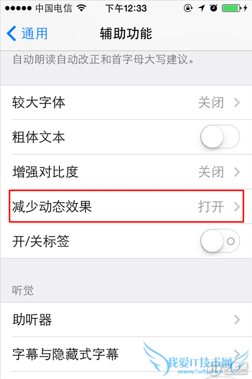 向下滑动,找到“减少动态效果”选项,将其打开即可!