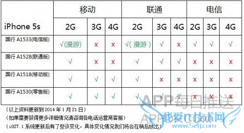 * 其中 A1533 是三网通用版,但运营商并未开放其他网络,只能通过漫游实现。