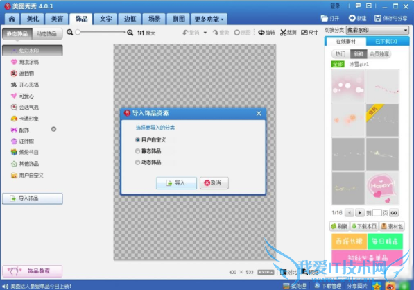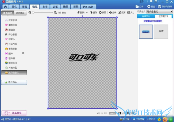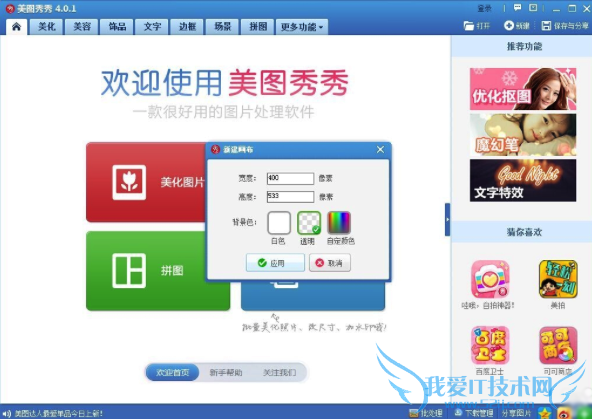 1、打开美图秀秀, 新建一个透明背景图层 尺寸是: 400*533 像素。