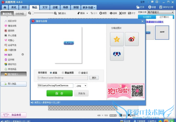 4、保存为UIGlintyStringViewChevron.png就可以了,注意是png格式。