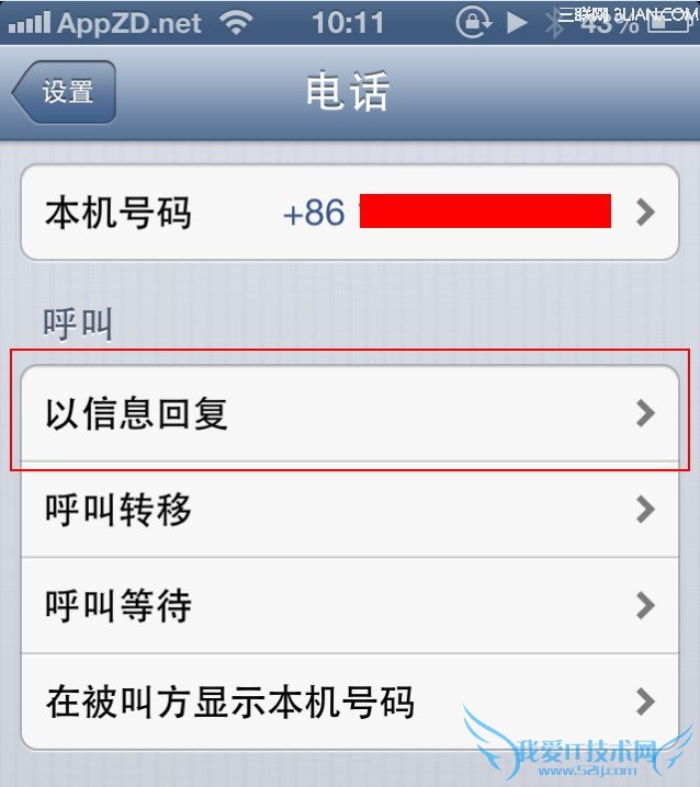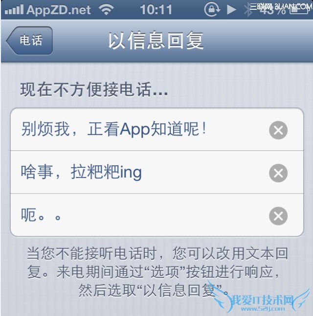 在以信息回复界面中输入常用的回复信息,如开会,在路上之类的