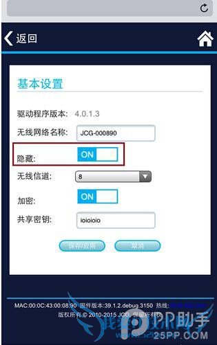 2.我们首先设置路由器隐藏WiFi信号,根据路由器手册,或者路由器背面标贴的提示,打开浏览器进入路由器设置页面。进入“无线设置”-“基本设置”,打开“隐藏”开关就行了。