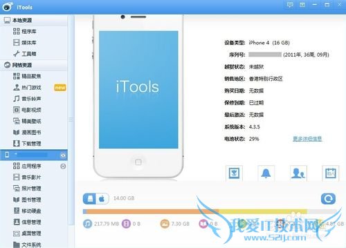 打开iTools,会自动识别和连接iPhone