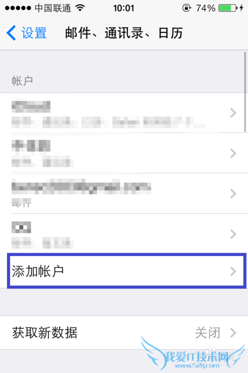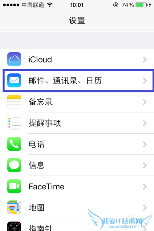 3、在设置列表中找到“邮件、通讯录、日历”选项,点击进入,如图所示