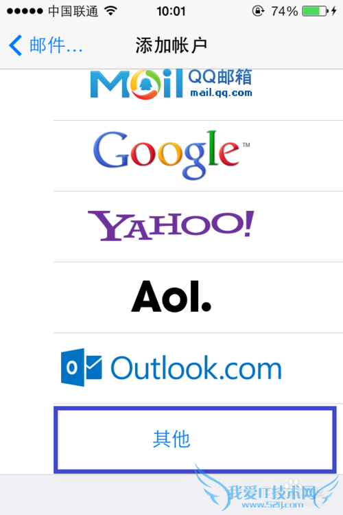 5、在添加帐户列表中,选择位于最底部的“其它”选项,如图所示