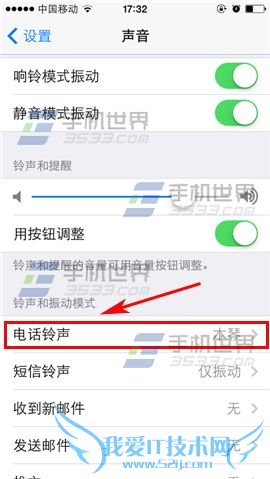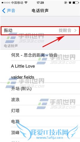 2)打开后我们再点击【电话铃声】,打开后点击【震动】。(如下图)