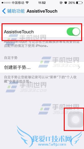 辅助功能里面选择“AssistiveTouch”: