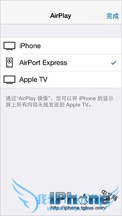 选择想要通过AirPlay播放的设备的名称,然后完成确定。现在在音乐或应用程序进行音频播放的时候就可以自动通过播放音频时,就可以自动通过AirPlay设备进行播放了。
