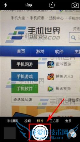 在唤醒屏幕后,按住屏幕右下角【照相机】图标向上拉,进入相机界面,点击【照相】按钮即可拍照。(如下图)