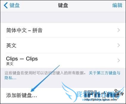 2、当安装好了第三方输入法以后,接下来可以按照上面的方法,进入键盘的设置列表,点击“添加新键盘”选项。
