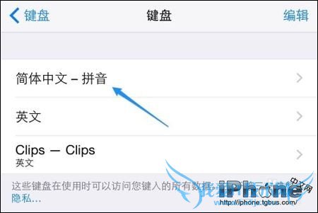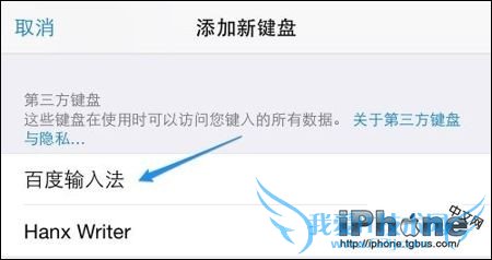 3、接着选择我们从App Store里下载安装的第三方输入法,如图所示。