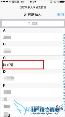 4、这个是小编想要群发短信的联系人,毕竟现在群发通讯录所有的人已经不多了,只用发个别几个就可以。