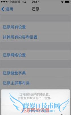 4、打开飞行模式,然后关闭飞行模式,4G标识会出现。如果不行请进入设置--通用--还原,选择还原网络设置,然后手机会自动重启。