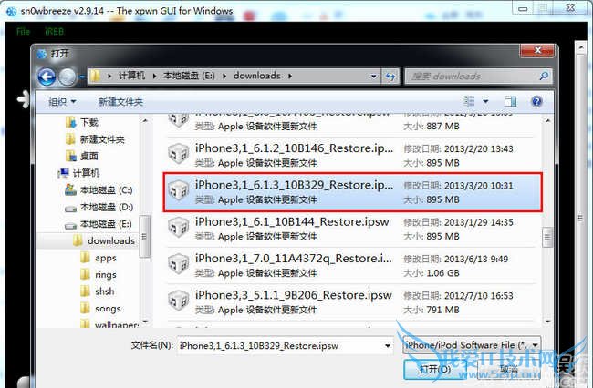 说明:因为【sn0wbreeze 雪花】 工具降级后是已经越狱 , 需要使用【 RedSn0w 红雪】引导开机一次!