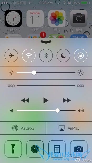 iOS 7新增了一个很棒的功能,叫做控制中心(Control Center),一挥手即可进入,这里有诸多经常使用的配置功能,比如开关飞行模式,Wi-Fi设置,蓝牙,亮度等等。这个功能终于来了,许多iOS用户都曾请求苹果加上它。