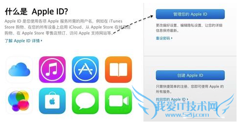 1、首先请先进入苹果官方提供的 Apple ID 账号管理页面,点击【管理您的 Apple ID】按钮,如图所示