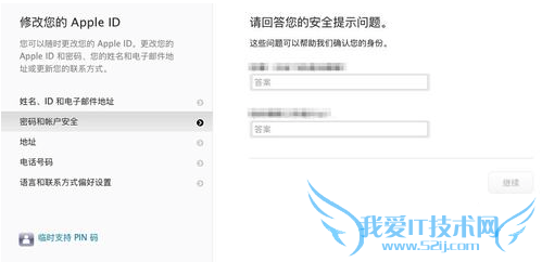 3、如下图所示,登录成功以后,若想要涉及 Apple ID 的帐户安全操作时,必须要输入之前设置的答案才可以。