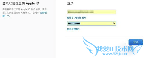 2、接着在这里登录想要找回安全提示问题的 Apple ID 账号与密码,如图所示