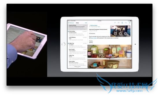 2、Split View功能,可将屏幕分成两部分,同时运行两个应用。此功能目前只能在iPad Air2上实现。