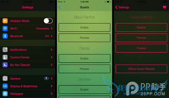 越狱插件可以涉及设备的方方面面,其中就包括了对每个界面元素的改变。QuartzSettings 这款新上架 Cydia 的插件就可以让用户对设置应用的外观进行自定义。
