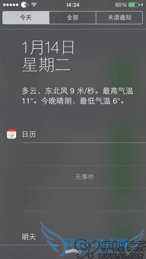 7.确保联网正常,下拉通知中心,稍等片刻,即可看到天气状况。