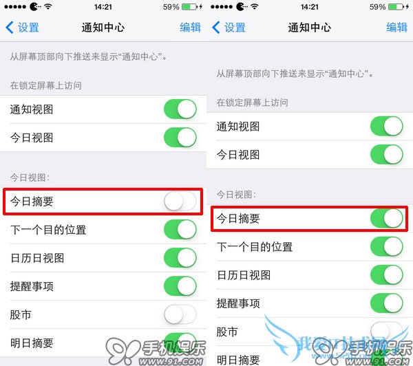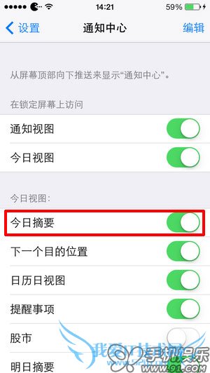 1.依次进入【设置】—【通知中心】—开启【今日摘要】