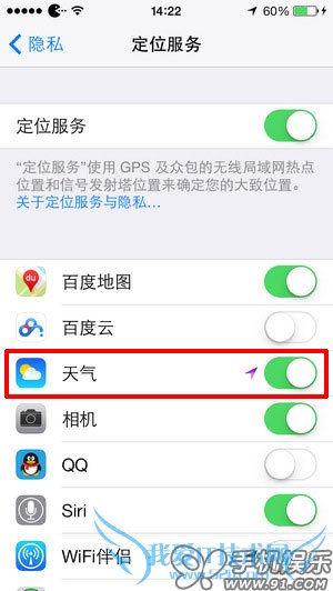 2.依次进入【设置】—【隐私】—【定位服务】—开启【天气】定位功能