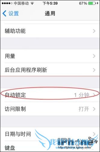 3、通用里有自动锁定,这里有默认的自动锁定时间,可以更改。