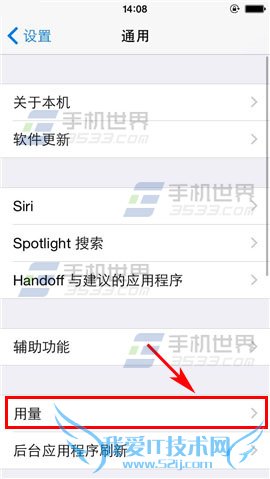 1)打开iPhone6Plus的【设置】,点击【通用】,然后选择【用量】选项。(如下图)