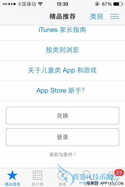 第一步,点击进入App Store精品推荐页面,拉至页面最后一行注销已登录账户。