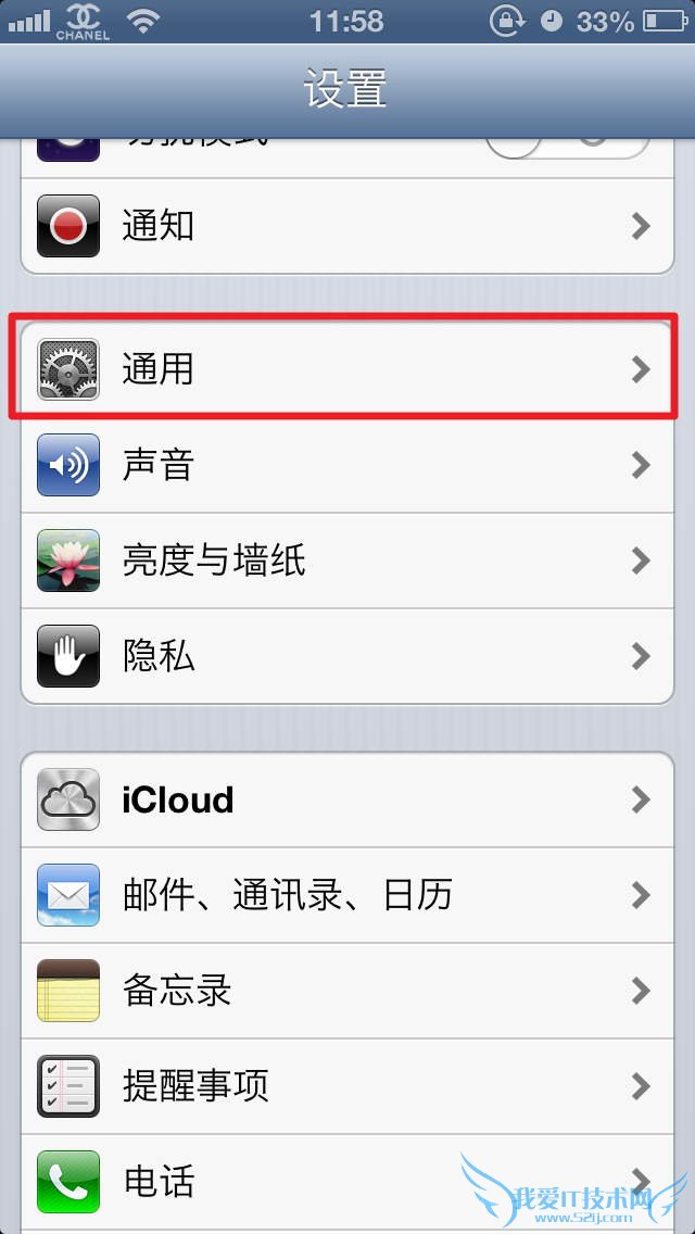 二、在设置列表中找到“通用”选项,点击进入,如图所示