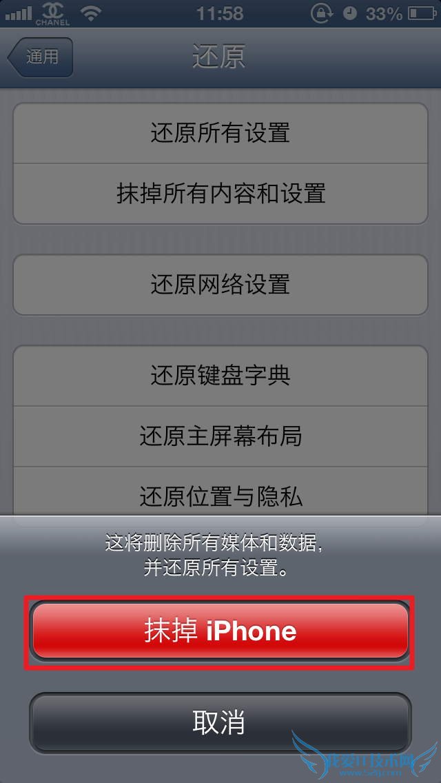 注:在抹掉所有内容和设置,建议先备份好个人数据,如通讯录,相片等。