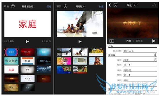 点击右下角的“+”即可新建项目进行视频制作。你可以套用应用中预设的模板,将视频处理成电影预告片的形式,如超级英雄、怀旧、童话等。你也可以按照自己的想法,将视频、照片、音乐添加到一起。我选择的是后者。