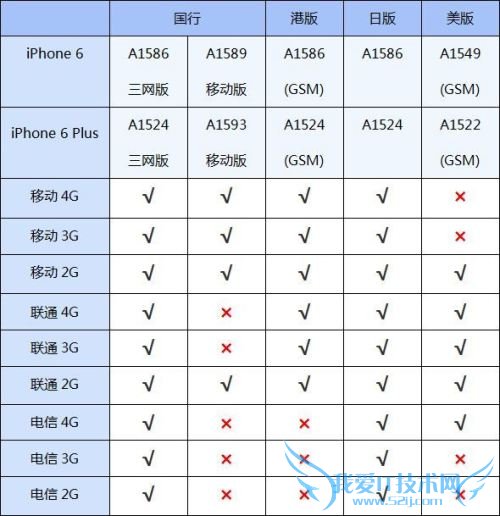注①:根据苹果官网,因美国ATT、T-mobile、Verzion使用的版本均为A1549和A1522,不支持任何频段的TD-LTE网络。在国内三大运营商均不同程度使用TD-LTE网络的情况下,以上三个版本一定不支持移动4G网络,虽然支持联通和电信的4G FDD-LTE网络,但是不支持其4G TD-LTE网络,此种情况或许会导致在国内使用4G时出现网络不如国行稳定等情况,具体有多大影响还需等待实测比较,因此对iPhone6和6 Plus的A1549和A1522版本不做推荐。