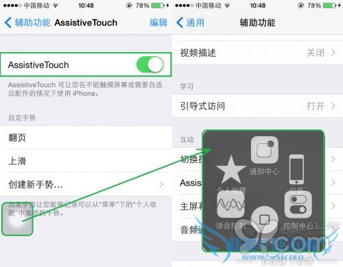 第四个是小白点:保护Home键从我做起 打开Assistive Touch的开关,就会出现小白点。这样就可以使用小白点而不是Home键了~对Home键不大好使,或者不太喜欢使用实体按键的童鞋,都很合适噢~