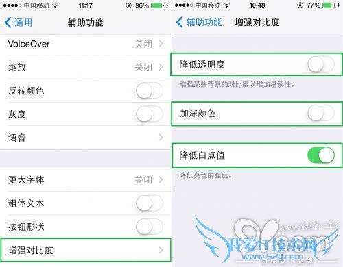 第二个功能也与显示相关,“增强对比度”的菜单中的三个选项都非常实用。