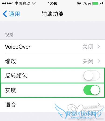 第一个我们要用到的功能是反转颜色和灰度。打开开关即可使用,灰度和反色都非常适合在暗光条件下使用,灰度在非常时刻还能节省电力噢!