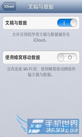 3)最后在提示“将从此iPhone删除iCloud中储存的所有文稿与数据。”选项中点击“关闭文稿”。这样就可以禁用掉iCloud同步选项中的iWork套件了。(如下图所示)