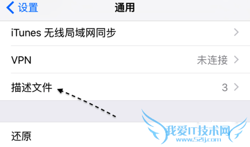 4、随后请在通用列表的底部,点击“描述文件”一栏,如图所示