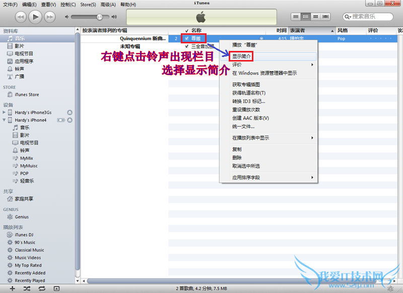 如果铃声已是M4R格式,只需要完成①操作后,就可以直接把铃声从桌面直接拖到设备iPhone上。